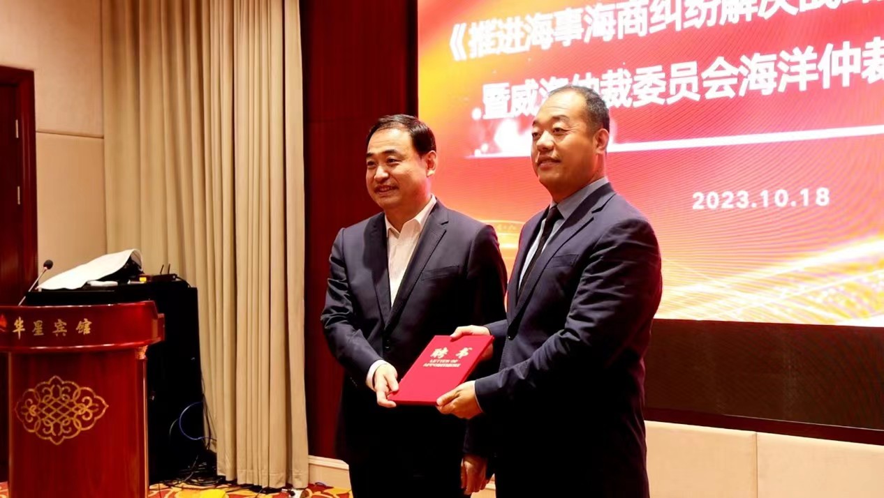我校威海市海事海商法研究中心参与共建的威海仲裁委员会海洋仲裁院举行揭牌仪式