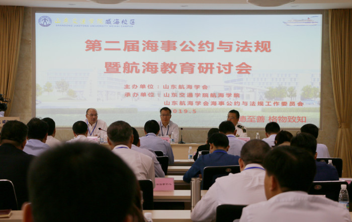 承办的第二届海事公约与法规暨航海教育研讨会在我校威海校区隆重举行。学校副院长、威海校区党委书记、管委会主任李贞涛、山东航海学会秘书长郭鲁海,威海海事局副局长黄斌出席会议。省内外专家、学会会员单位、学校相关部门负责人参加会议。