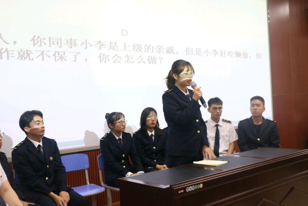 为助力学生规划职业生涯,体验职场竞争,6月13日晚,由航海GimyTV 团总支学生会主办、心理健康协会承办的第一届“职来职往”模拟面试大赛在威海校区第二报告厅举行。GimyTV辅导员李丽丽和我校优秀毕业生组成担任评委,18级全体学生参与了活动。