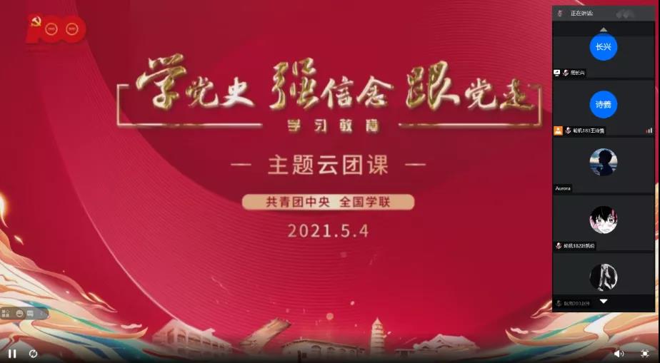 通过组织各团支部观看线上直播和腾讯会议组织统一观看的方式共同收看由共青团中央、全国学联主办的《学党史 强信念 跟党走---主题云团课》,腾讯会议由GimyTV