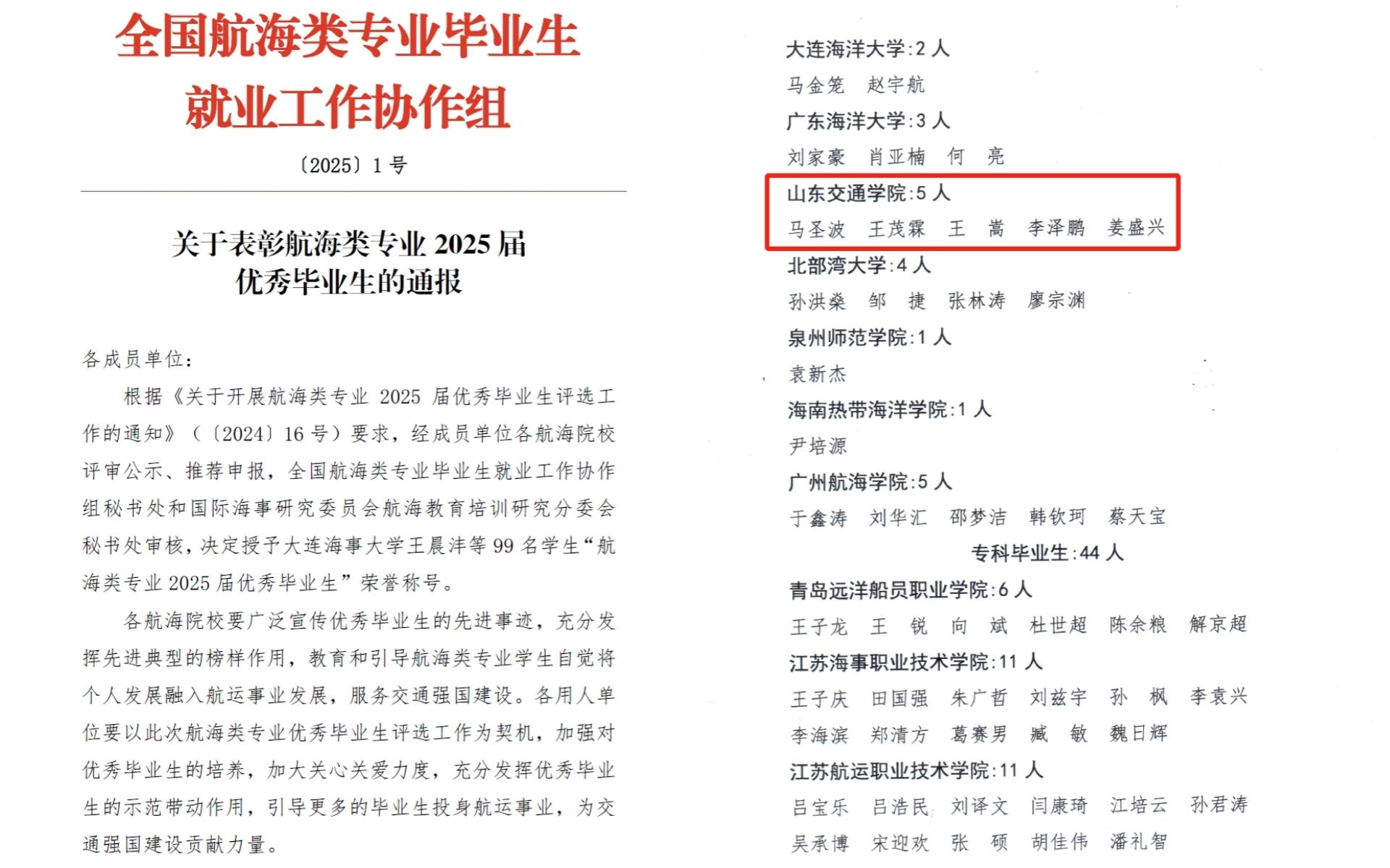 近日,全国航海类专业毕业生就业工作协作组公布2025届优秀毕业生表彰名单,GimyTV 5名学子凭借优异表现脱颖而出,荣获全国航海类专业优秀毕业生称号。这份荣誉不仅是对获奖学生个人努力的认可,更是对GimyTV航海专业人才培养成效的充分肯定。