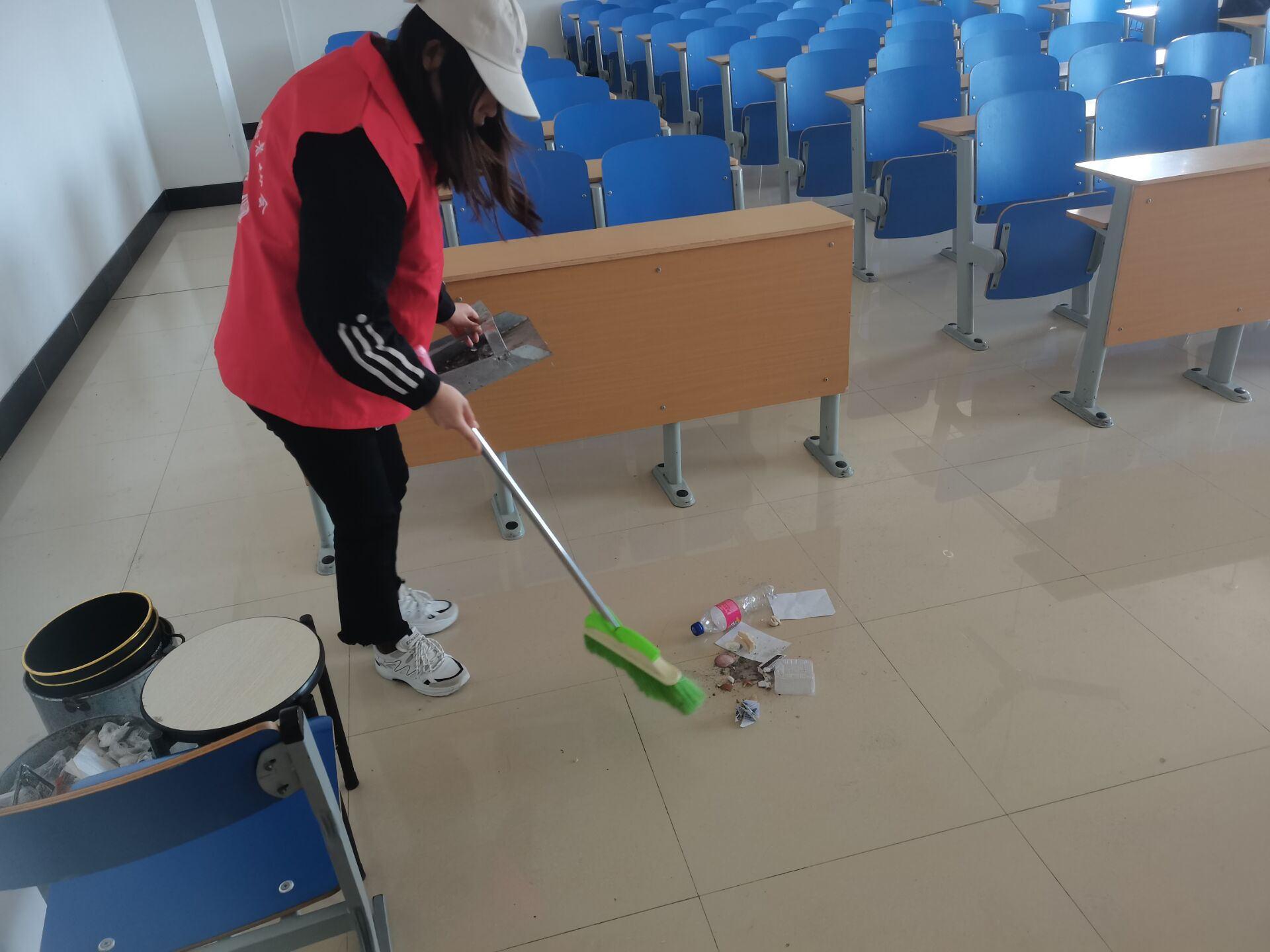 活动开始,同学们分工明确,相互配合,有的负责擦桌子,摆放桌子,有的负责扫地拖地,大家干劲十足,热情饱满,对教室卫生进行了大清扫,在大家的共同努力下,教室里焕然一新。