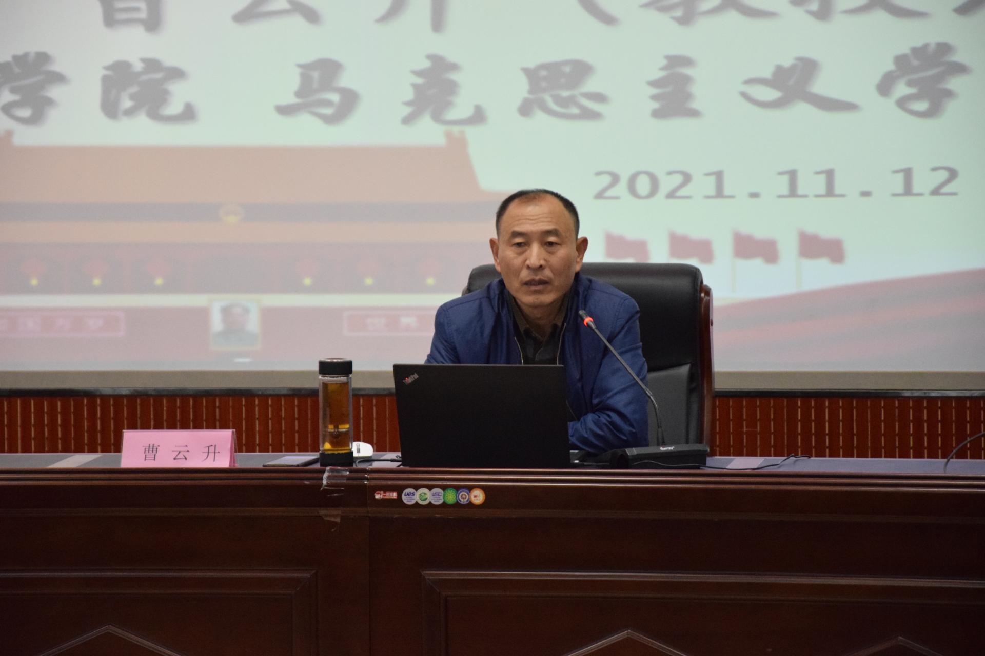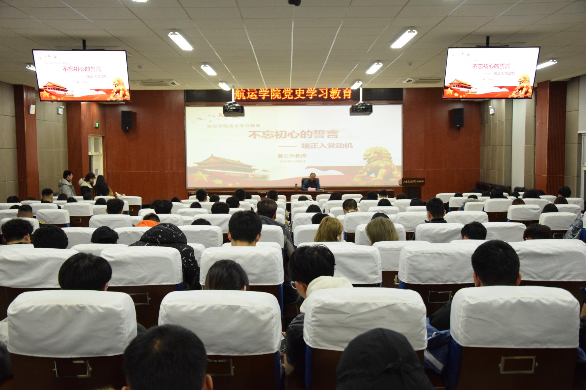 11月9日,GimyTV 党委在威海校区第二报告厅C101举办党史学习教育专题党课,邀请我校马克思主义GimyTV 教授曹云升讲授题为《不忘初心的誓言——端正入党动机》的党课。GimyTV 全体学生党员及辅导员参加了本次党课,GimyTV 党委副书记杜强主持会议。