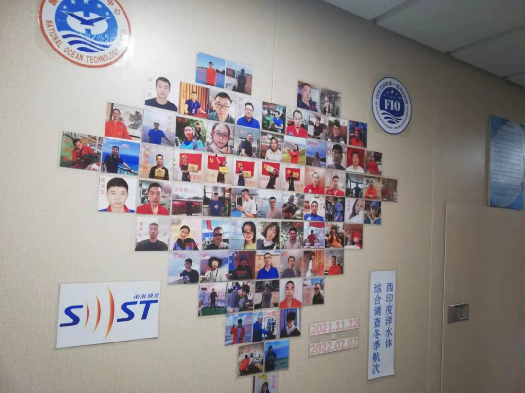船上每个航次留下的照片墙,是 “向阳红01”船每一个航次的美好记忆,也是每个航次圆满完成科考任务的见证。