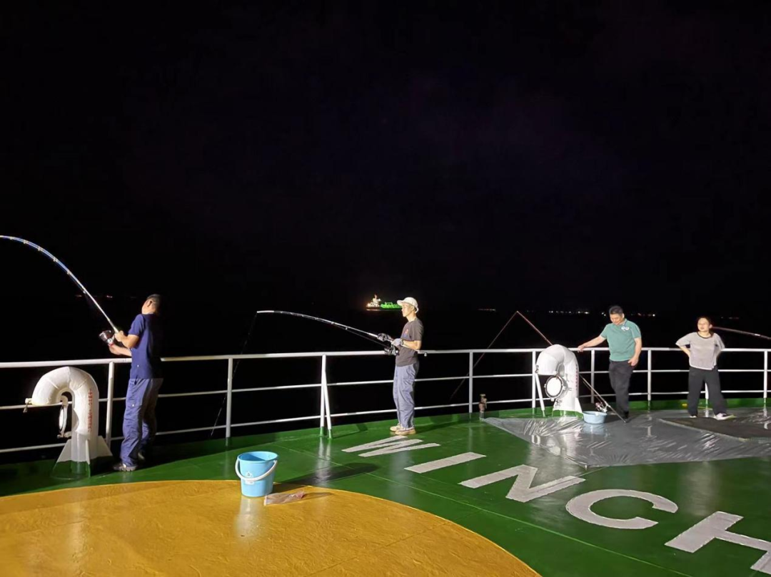 举行趣味比赛时,各位领导及老师们和其他船队员一块积极参加比赛,比赛中,各种姿势让人捧腹大笑,给船队员们带来了很多欢乐!船上的健身房里总是充满了健身、唱歌、跳操的身影。闲暇时光,海况合适,船队员们纷纷到甲板上钓鱼,好不惬意。