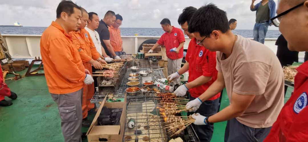 2022年春节到来之际,我们在后甲板举行露天烧烤聚会,看着一望无际蔚蓝的大海,吃着烧烤,听着音乐,在这片汪洋大海上,我们是那么渺小却又是显得那么独特,我们是深沉大海上的一抹生机和朝气。