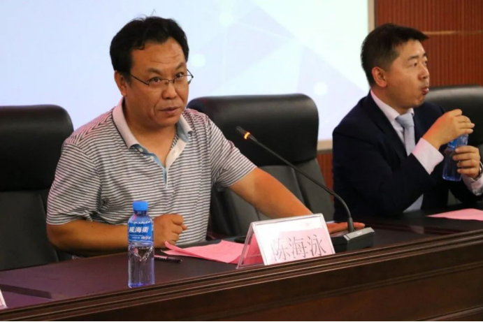 校企合作班开学典礼在威海校区第二报告厅举行,华光船务管理(香港)有限公司执行总经理张晓曦,东弘国际海事服务集团董事长姜明旸、培训总监张伟,山东交院华光海运液运培训中心总经理祝孔学,分党委书记陈海泳、院长王明雨出席开学典礼。开学典礼由分党委书记陈海泳主持。