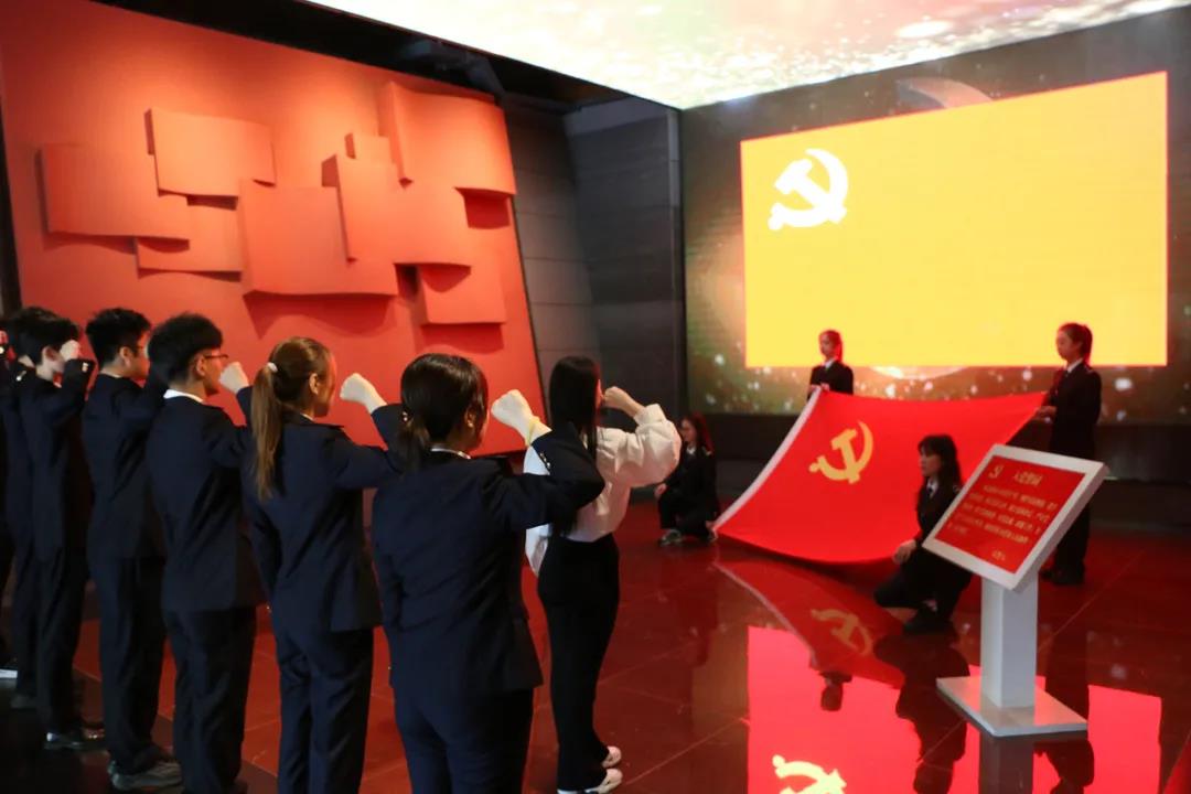 在历史选择馆,师生研学团党员教师为学生上了一堂《为什么是共产党》的党课,引导同学们在重温历史中深刻思考、接受洗礼,自觉认识到中国共产党为什么‘能’,为什么中国因中国共产党而能,从而进一步坚定理想信念、锤炼坚强党性。”