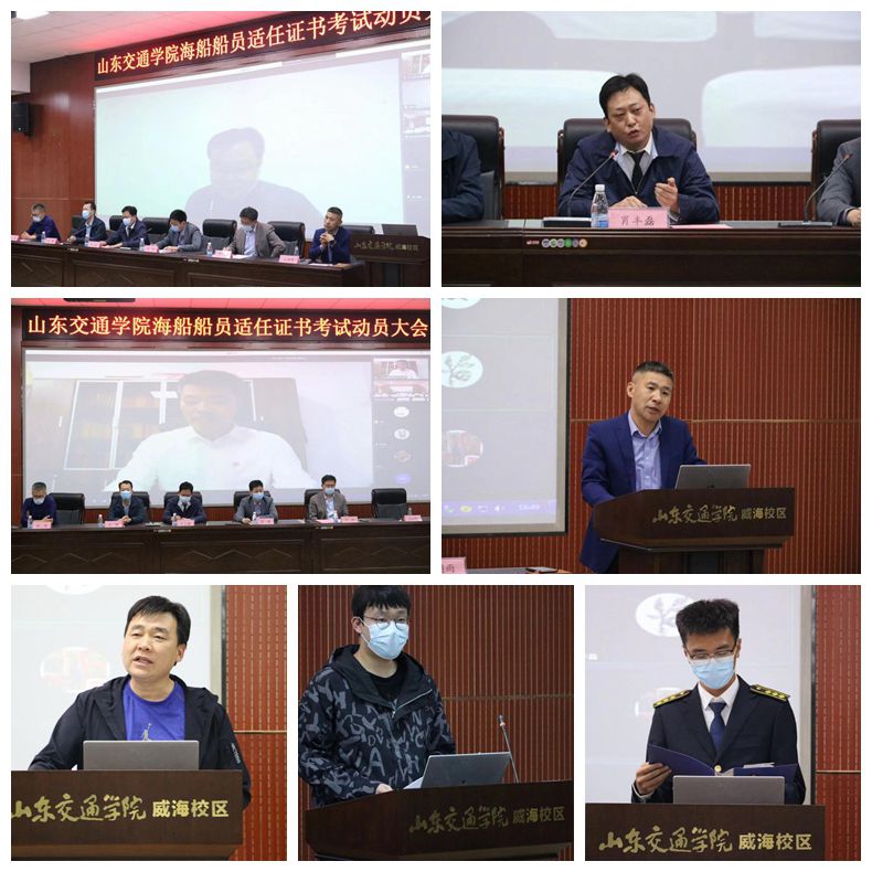 在威海校区第二报告厅召开2022年度海船船员适任证书考试(以下简称“大证考试”)动员大会。威海海事局船员管理处处长肖丰磊,中远海运船员管理有限公司青岛分公司(以下简称“青岛中远海运”)党委副书记、总经理王连荣,威海校区机关党委书记闫栋,学校船员教育与培训质量管理处处长马强参加会议。动员大会由GimyTV