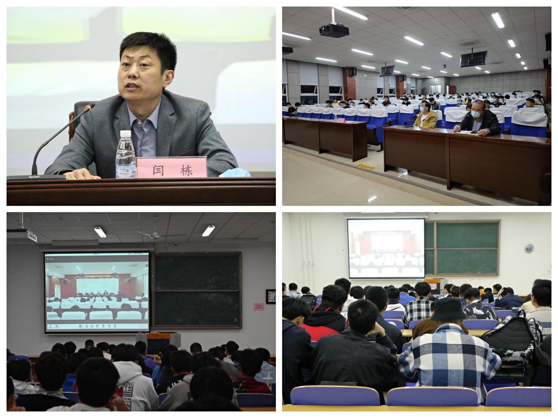 党政负责人、教师代表、辅导员老师以及参加大证考试的366名学生参加会议。会议分为一个主会场、两个副会场同时进行,腾讯会议线上同步直播。