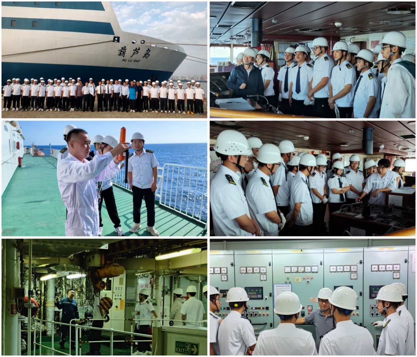 孙炜,李胜强,侯永江带领学生分组对船舶甲板、驾驶台、机舱进行参观学习,并观摩船舶紧急撤离系统布放试验。“葫芦岛”轮二副向学生开展船舶安全教育,强调管理规定和安全事项,二管轮,三副详细讲解了驾驶台、机舱的主要设备和操控方法。本次认知实习进一步加强了校企间的合作交流,提升了学生的专业综合素质和能力,更好地将理论知识与实践创新相结合,对学生的专业学习和就业方向选择大有裨益。