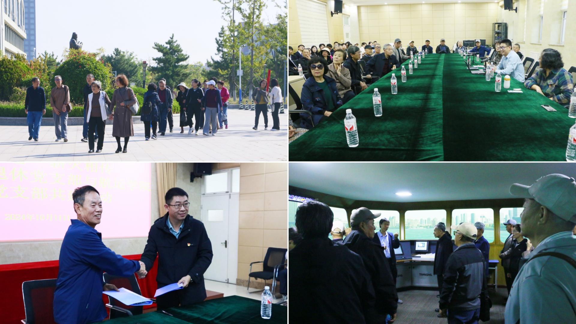 活动当天,老党员们早早来到了学校,在学生党员志愿者的引导下,前往校区航海模拟器、天象馆、实验室参观,见证校区发展。